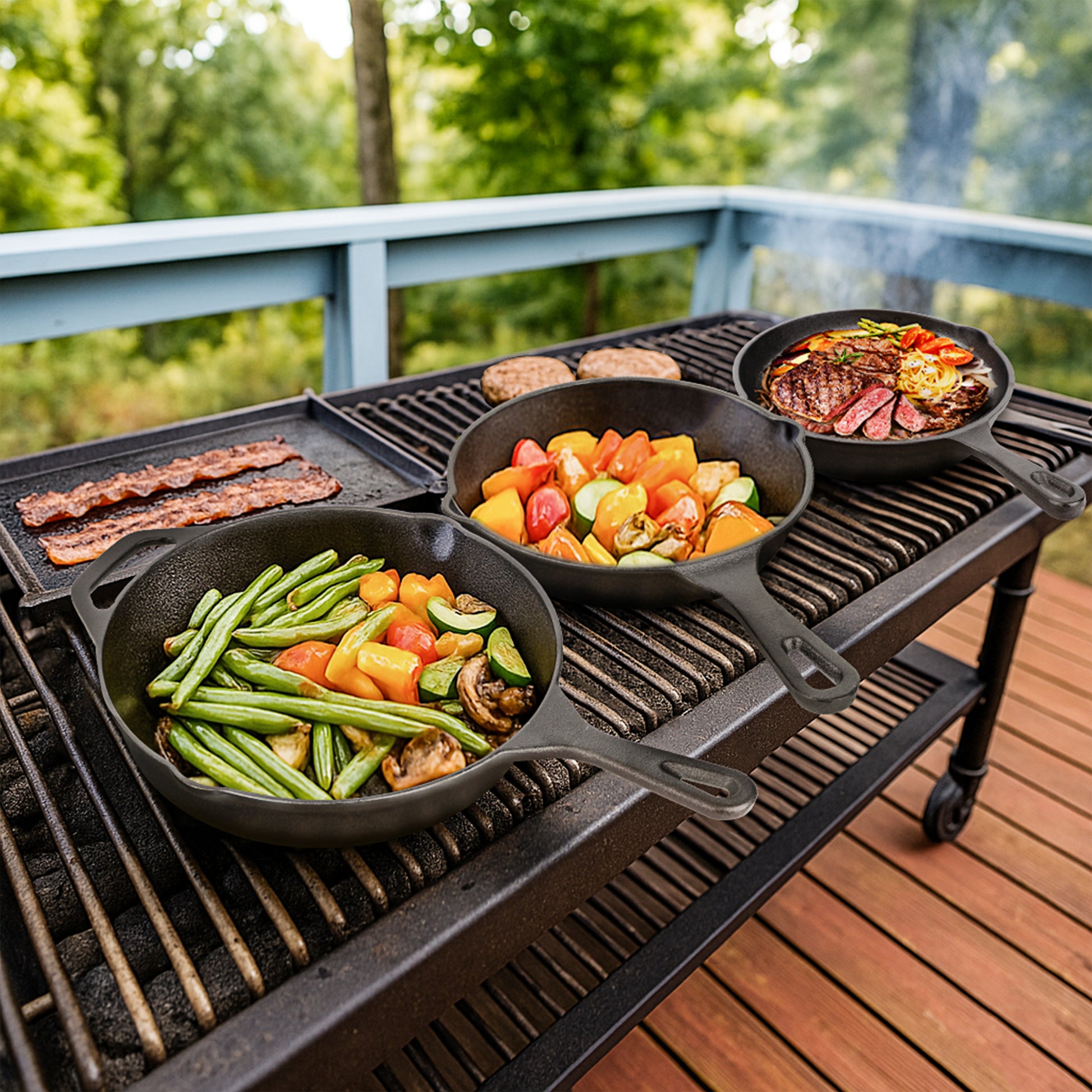 MULTI-FUNCTIONAL: Our cast iron cookware is multi-functional, and suitable for many different cooking methods. Use our skillets on the stove top, in oven, over a campfire, and even when slow-cooking! Our set is great for frying, sauteing, cooking, grilling, and more.